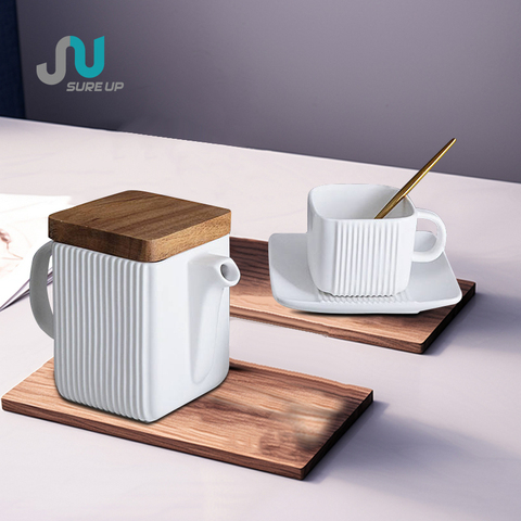 Hiện Đại Tối Giản Phong Cách Ins Trắng Gốm Tea Set Với Ấm Trà Và Trà Divider Nắp Bằng Gỗ Và Nến Sưởi Ấm Cơ Sở