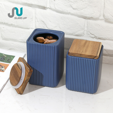 Hiện Đại Sáng Tạo Thẳng-Grained Vuông Hộ Gia Đình Văn Phòng Snack Có Thể Thực Phẩm Gốm Lưu Trữ Jar Với Nắp Tre
