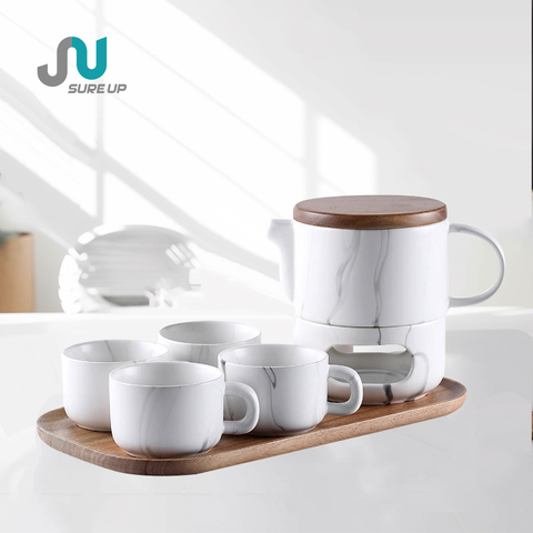 Mô Hình Bằng Đá Cẩm Thạch Tea Set Với Cơ Sở Bằng Gỗ Giữ Cốc Gốm Ấm Trà Với Non-Slip Nắp Bằng Gỗ Tách Trà Cho Quà Tặng Doanh Nghiệp